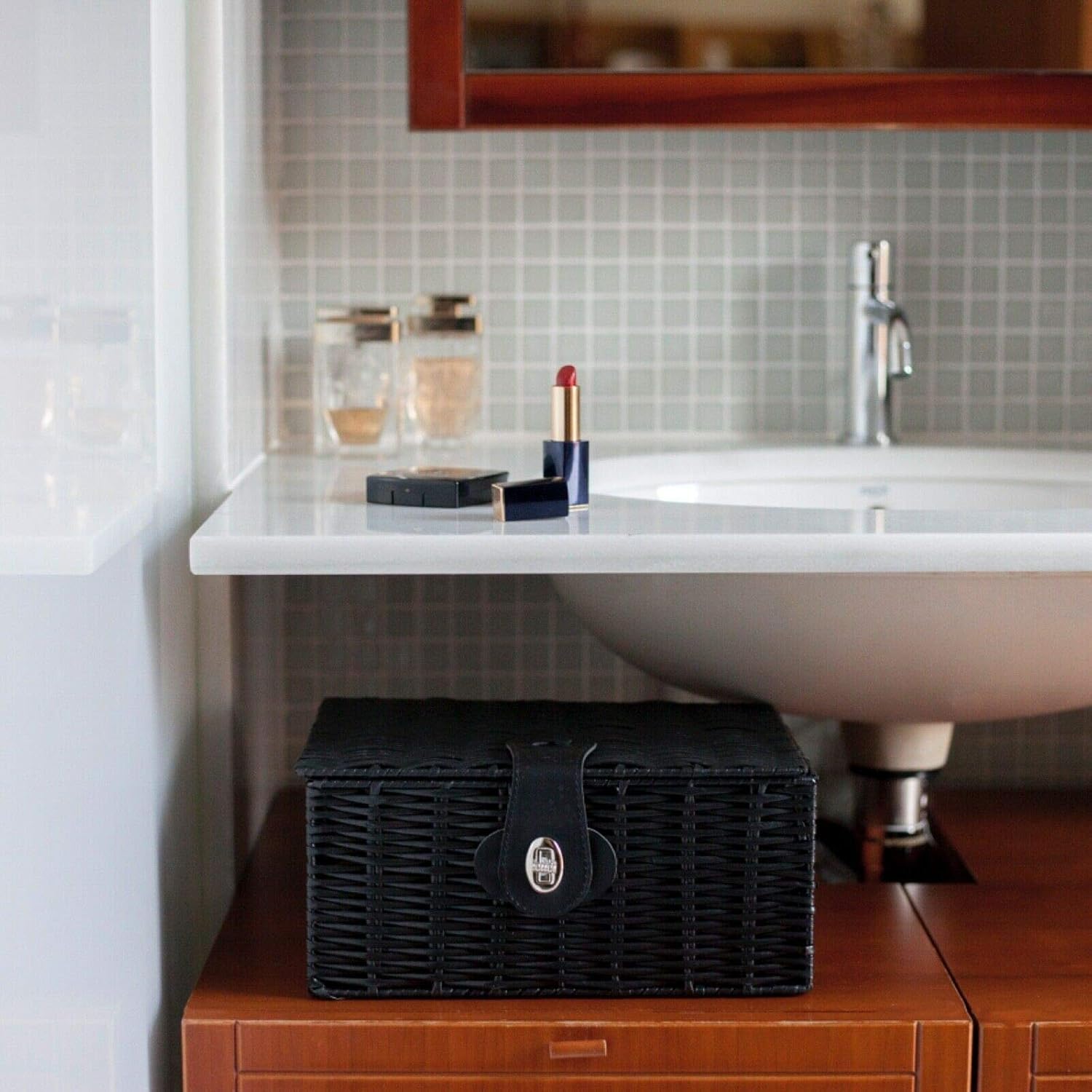 This is just an example, you can use the baskets however you see fit for whatever purpose in your home whether it be to store beauty products, hand towels, or body towels after your shower or bath.