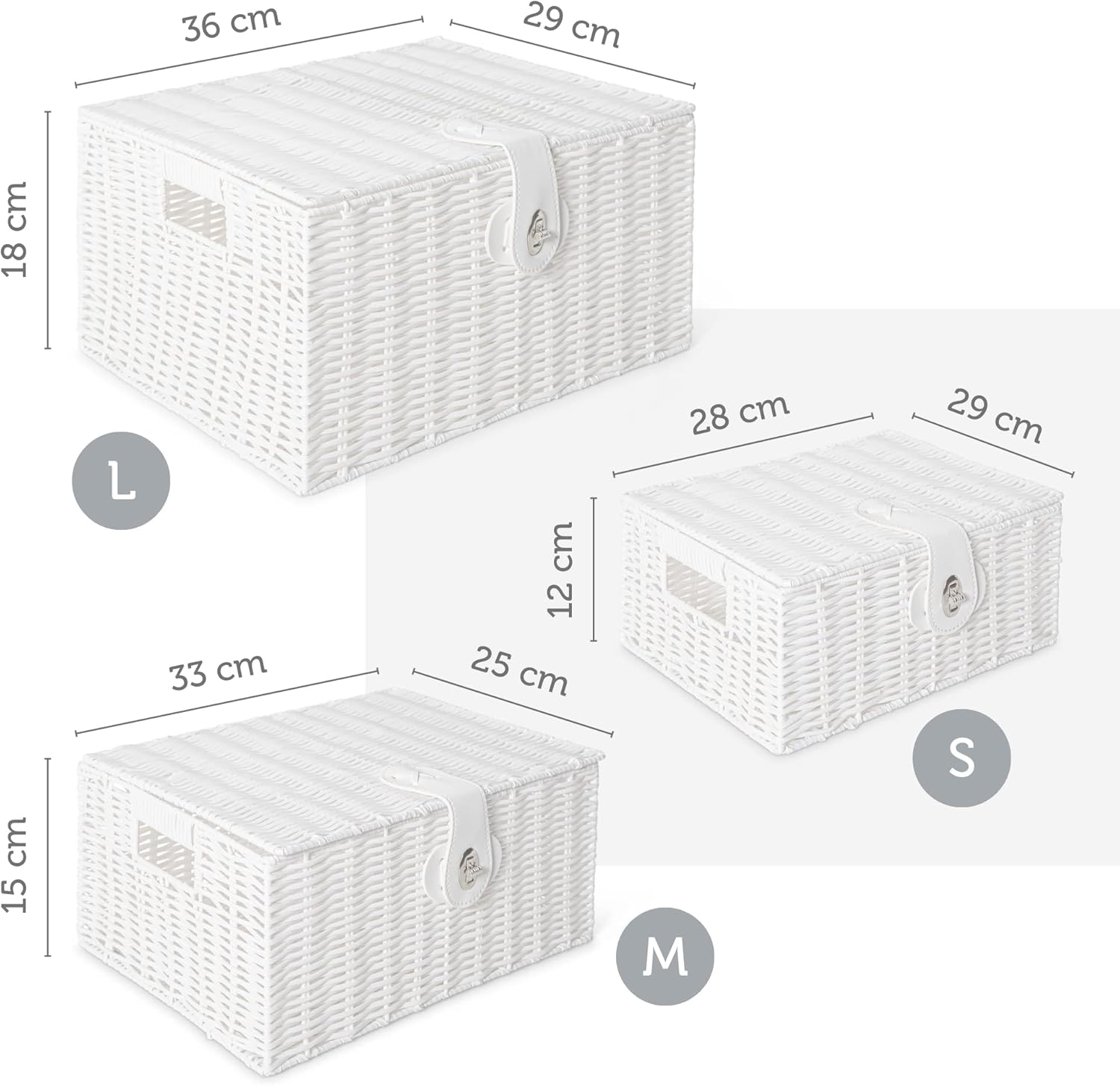 | Size: | [Large: 18.5cm (H) x 36cm (W) x 28cm (D), ] [Medium: 15.5cm (H) x 33cm (W) x 24cm (D),] [Small: 12.5cm (H) x 28cm (W) x 20cm (D)] |