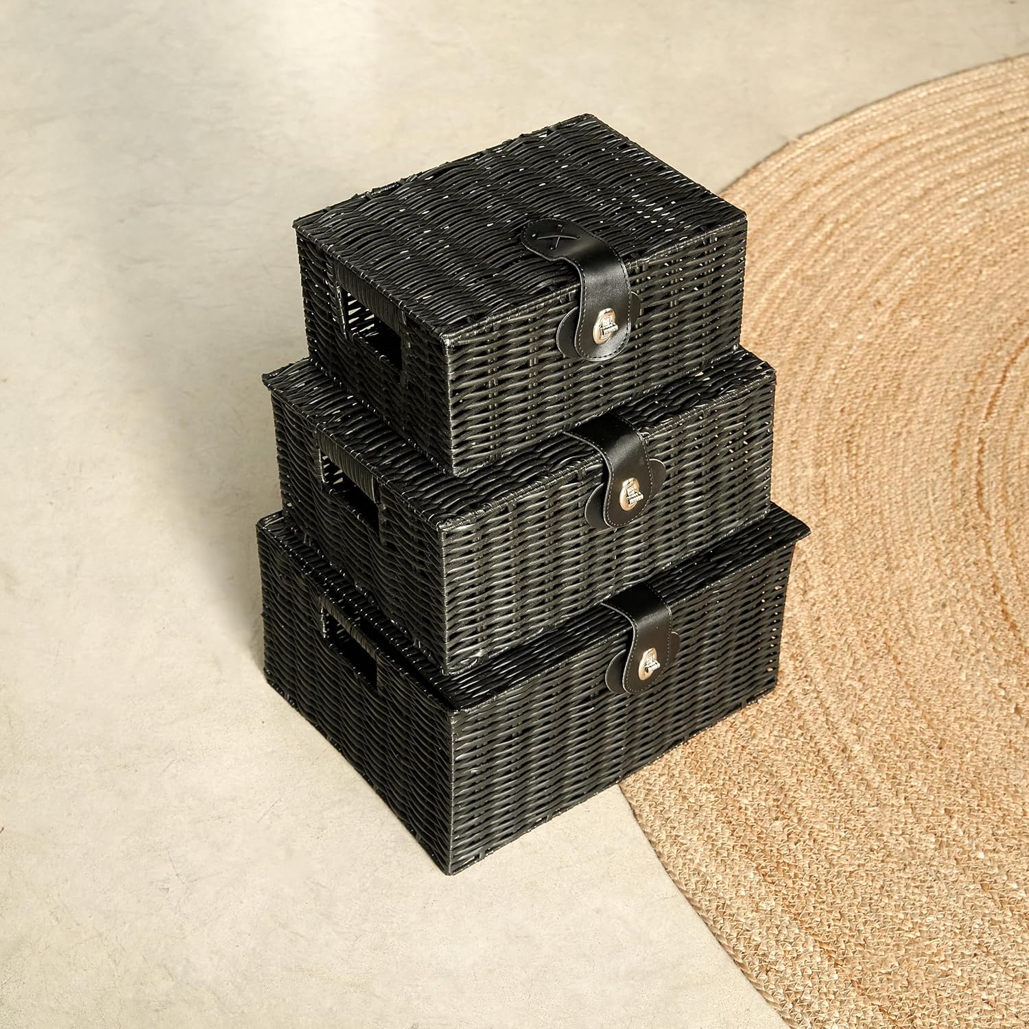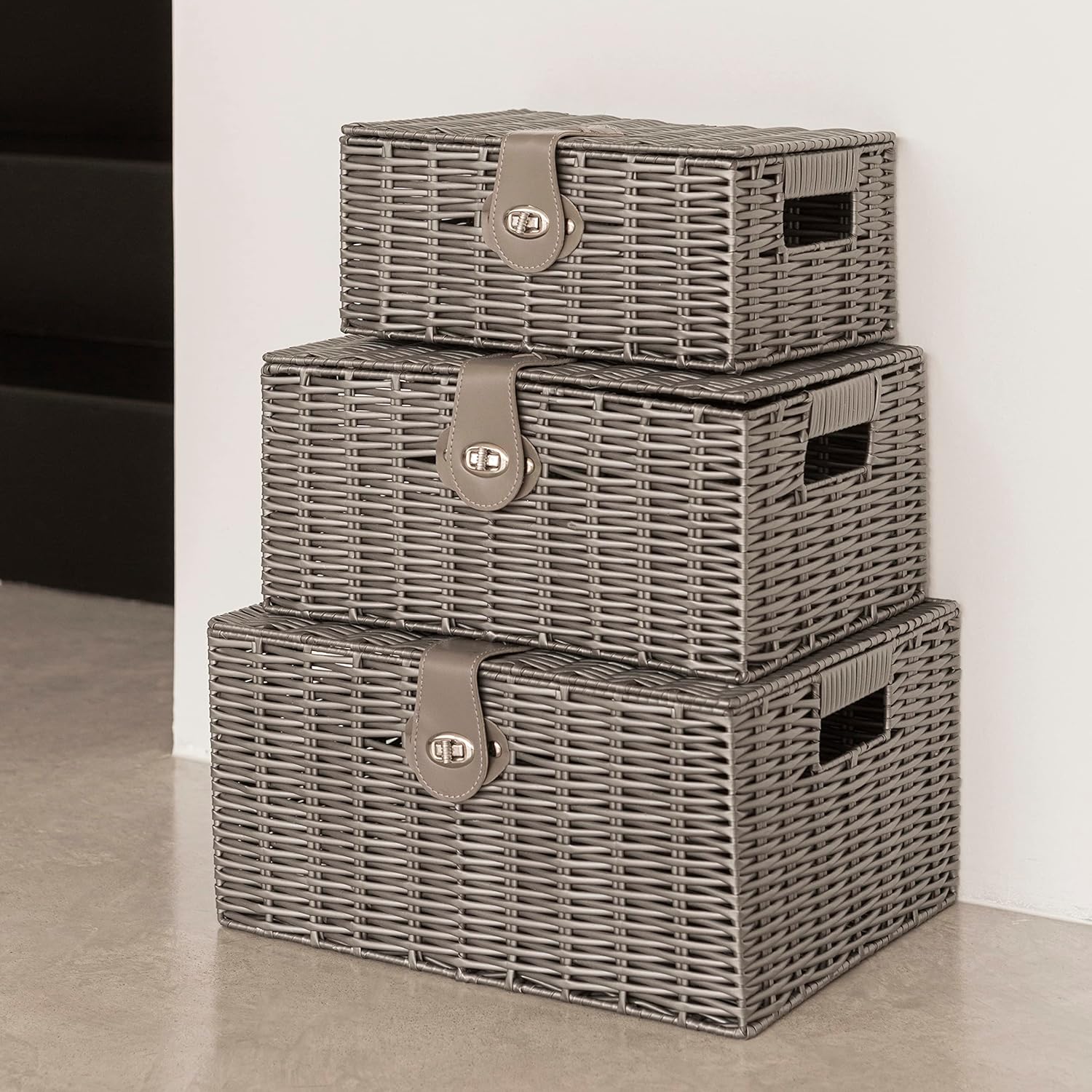 3-Piece Set of Woven Storage Baskets Made with Resin | Vencier