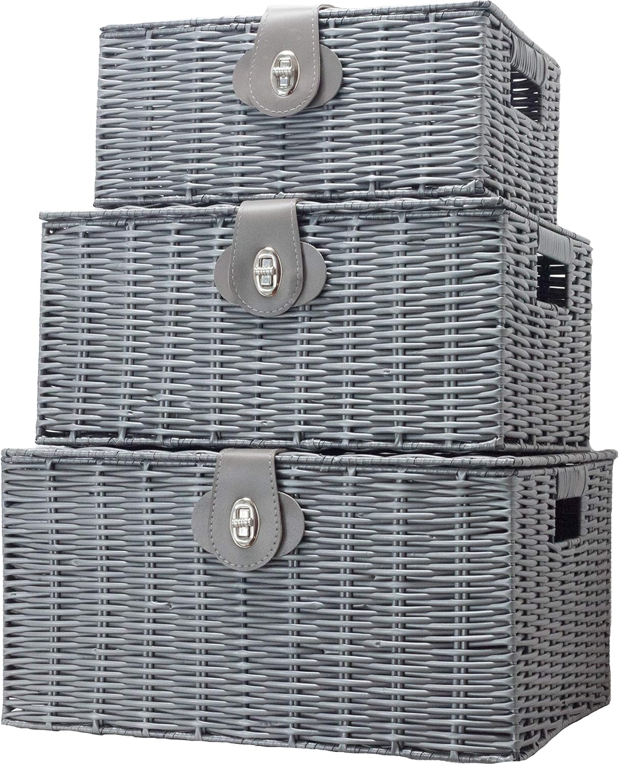 These baskets are available in three sizes, so you can choose from them to suit your storage requirements. You can stack the baskets and use each to store different-sized items.