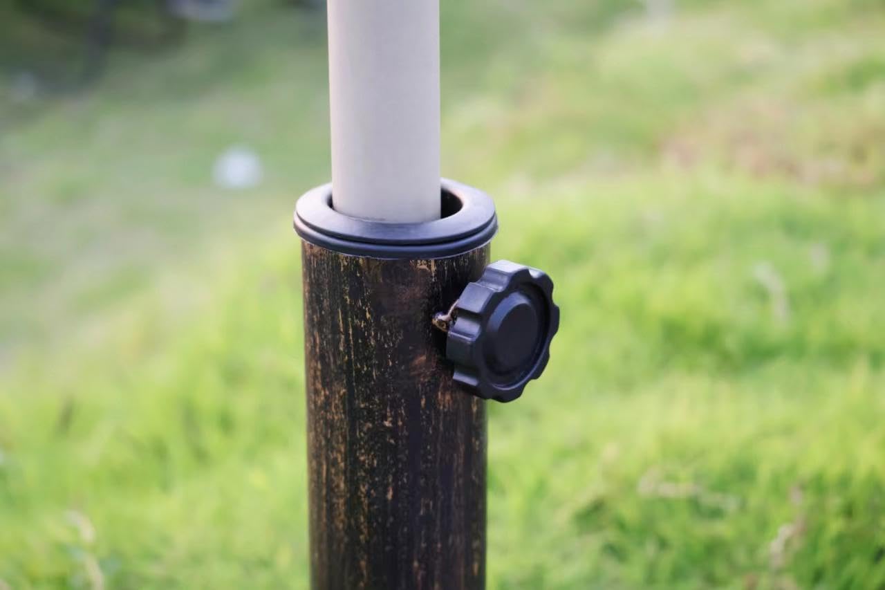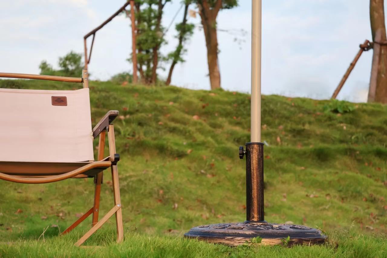 - Heavy-Duty Construction: This patio umbrella base stand is crafted from robust resin and iron, ensuring exceptional durability and longevity. Perfectly designed for outdoor use, it can withstand various weather conditions while maintaining its struct